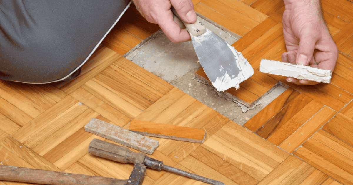 Bước 1: Loại bỏ viên gạch hư. Dùng dụng cụ cạy bỏ toàn bộ viên gạch bị hỏng, sau đó vệ sinh sạch lớp nền bên dưới, loại bỏ keo cũ và bụi bẩn.